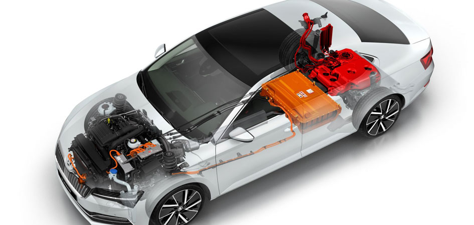 Nový vůz Škoda Superb iV je prvním sériově vyráběným modelem značky Škoda s plug‑in hybridní technologií. Kombinace výkonného spalovacího motoru a elektromotoru nabízí ekologickou jízdu při zachování maximálního výkonu. Baterie má kapacitu 37 Ah, respektive 13 kWh, emise CO2 činí méně než 40 g/km. Dojezd v čistě elektrickém režimu činí až 55 km dle cyklu WLTP. Škoda Superb iV plní emisní normu Euro 6d‑TEMP.